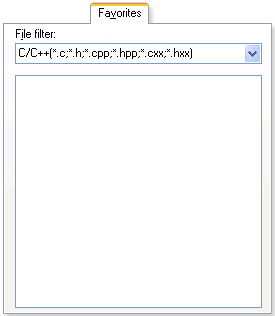 The Favorites tab allows the user to search for a particular string among the list of favorite files. Only files in the favorites list may be searched with this option. Refer to the Favorites tab section below for more information. |