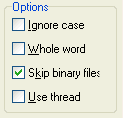 The Files tab allows the user to search for a particular string among files located on the local disk or on a network mount. The tab contains controls designed to allow the user to browse drive locations. Refer to the Files tab section below for more information |