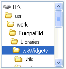 The directory navigator allows the user to walk the project directory list in order to chose the location where the find in files operation will begin. |