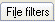 The File Filters tab is used to configure file filters used in many Code Roar dialogs. |